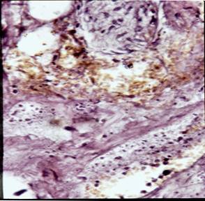 პრობლემის აქტუალობა: ნაწლავთა პარეზი წარმოადგენს ერთ-ერთ უხშირეს პოსტოპერაციულ გართულებას აბდომინურ ქირურგიაში. იგი განსაკუთრებით მძიმედ მიმდინარეობს მწვავე პერიტონიტების დროს ბავშვთა ასაკში. ნაწლავთა პარეზის გამოვლენის ხარისხი დამოკიდებულია პერიტონეუმის ფურცლებში განვითარებული ანთების სიღრმეზე. იგი ამძიმებს ავადმყოფის ზოგად მდგომარეობას და აბლოკირებს აღდგენით პროცესებს ორგანიზმში [1,2]. მწვავე პერიტონიტის, ისე როგორც რიგი მძიმე ქირურგიული ინფექციების პათოგენეზში, მნიშვნელოვან როლს თამაშობს ანთების კერაში გამომუშავებული ციტოკინების გავლენით განვითარებული სისხლძარღვთა ენდოთელიუმის დისფუნქცია, პროთრომბოზული კოაგულოპათია და არასრულფასოვანი ფიბრინოლიზი [6,7]. აღნიშნული ტრიადა ქმნის თრომბოჰემორაგიული სინდრომის საფუძველს, რომელიც წარმოადგენს დაავადების მნიშვნელოვან მამოძრავებელ მექანიზმს, განაპირობებს მიკროცირკულაციის დისიმინირებულ დარღვევებს, ქსოვილთა ჰიპოპერფუზიას და ორგანოთა დისფუნქციას [3]. მწვავე პერიტონიტების დროს ნაწლავთა პარეზის გენეზში ზემოაღწერილი მექანიზმების როლზე მიუთითებენ მიკრომორფოლოგიური კვლევები, რომლებშიც ნაჩვენებია პერისტალტიკის განმახორციელებელ ნაწლავის გლუვ კუნთებსა და მათ მაინერვირებელ სტრუქტურებში მიკროცირკულაციური დაღრვევები. კერძოდ, ნაწლავის ჯორჯლისმხრივ კიდეში, მსხვილი სისხლძარღვებისა და ნერვების გავლის ზონაში აღინიშნება პერინერვული სიხლძარღვების (vasa nervorum) დილატაცია, სისხლსავსეობა და თრომბოზი. შესაბამის ნერვულ ბოჭკოებში ვლინდება აქსოპლაზმის შეშუპება, შვანის უჯრედების ციტოპლაზმის გაჯირჯვება და მათი პერიცელულური შეშუპება (იხ. სურათი). ანალოგიური დისტროფიული ცვლილებები ჩანს ნაწლავის კუნთთაშორისი ნერვული განგლიების სტრუქტურებში და თავად კუნთოვან ბოჭკოებში. ნერვული განგლიებში შეინიშნება აქსოპლაზმის გაფერმკრთალება, ციტოპლაზმის ჰომოგენიზაცია, მორჩების ვაკუოლიზაცია და პერიცელულური შეშუპება. დისტროფიული ცვლილებები აგრეთვე წარმოდგენილია კუნთთაშორისი შეშუპებით, გლუვკუნთოვანი ბოჭკოების განშრევებით, მათი არა¬ერთგავოვანი შეფერვით, ციტოპლაზმის სიმკვრივით, ბირთვების პიკნოზით ან ჰიპერტროფიით. აღნიშნული მორფოლოგიური სურათი შესაძლოა შეფასდეს, როგორც თრომბოჰემორაგიული სინდრომის ადგილობრივი გამოვლინება. ამრიგად, მწვავე პერიტონიტების დროს, ნაწლავთა პარეზის ერთ-ერთ მიზეზს წარმოადგენს ნაწლავის გლუვკუნთოვანი შრის ინერვაციის დარღვევა, რაც განპირობებულ